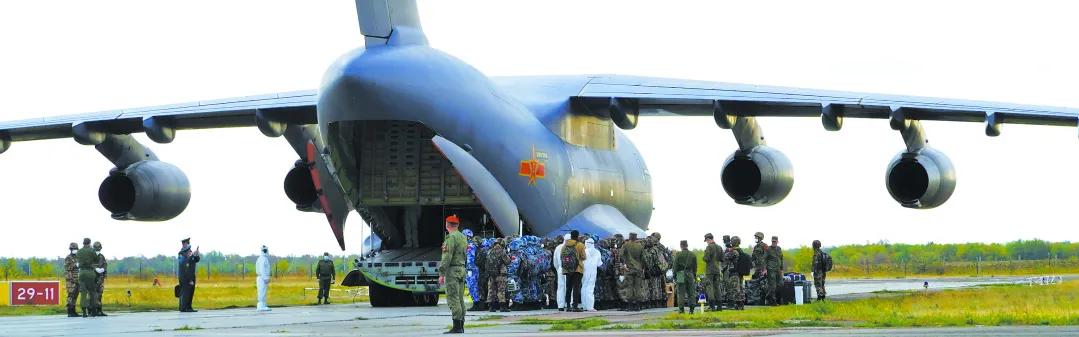△9月10日,最后一批中方参演部队官兵,乘坐运-20运输机抵达俄罗斯奥伦堡军用机场。