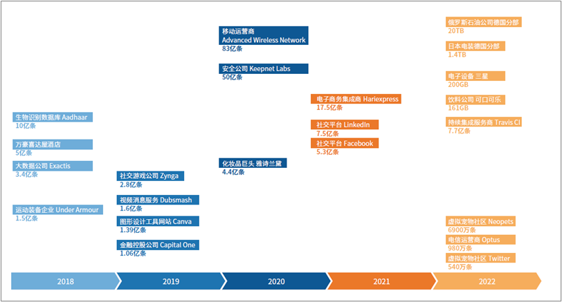 图1 全球重大数据泄露事件概览,2018-2022